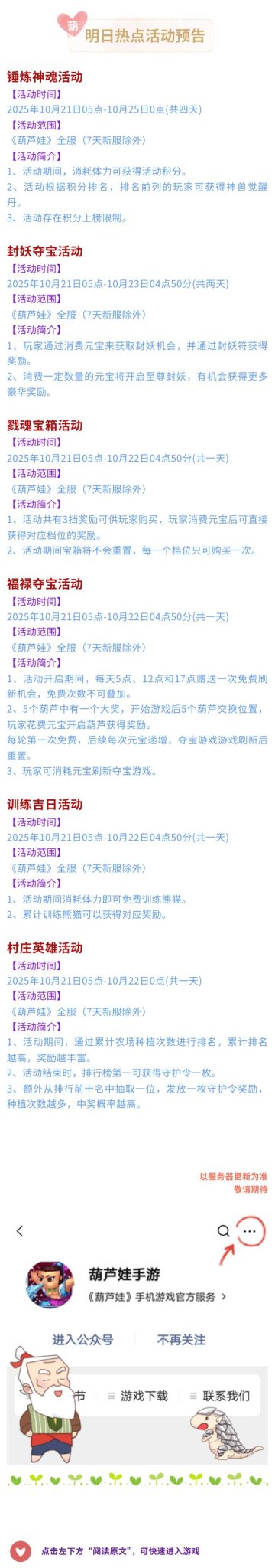【葫芦娃】10月21日活动预告