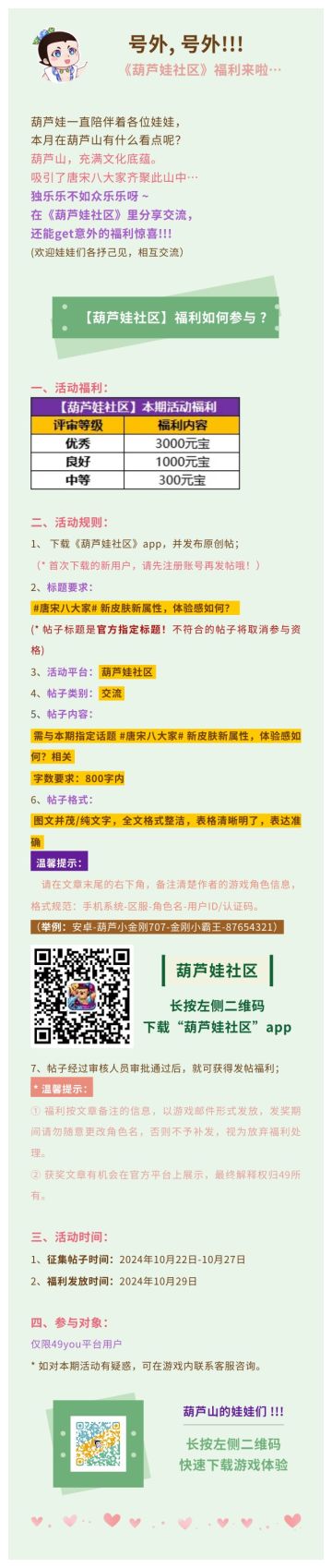 【葫芦娃】10月17日活动预告