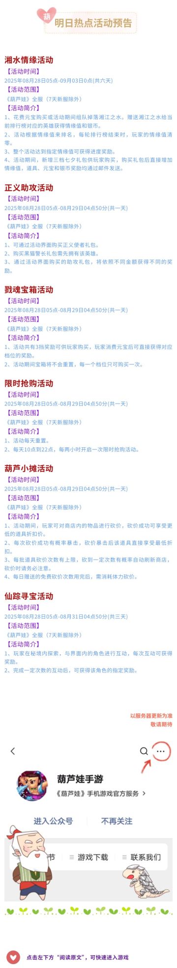 【葫芦娃】8月28日活动预告
