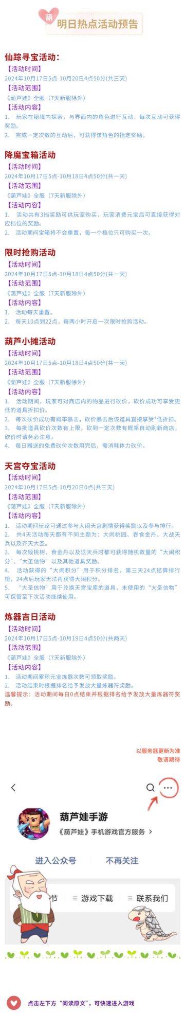 【葫芦娃】10月17日活动预告