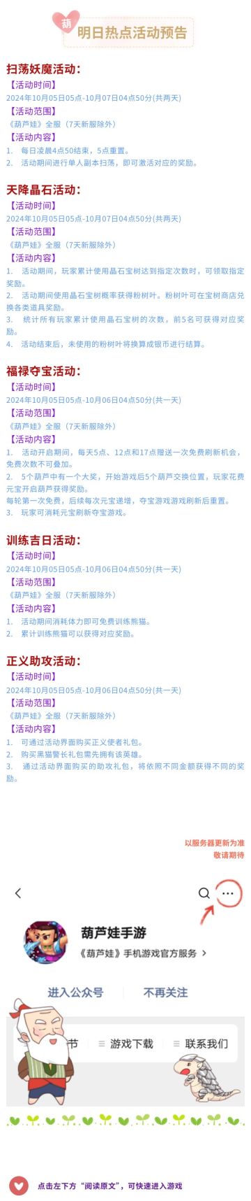 【葫芦娃】10月5日活动预告