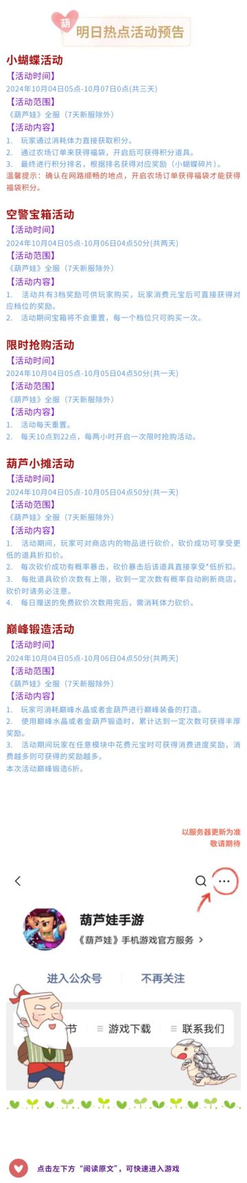 【葫芦娃】10月3日活动预告