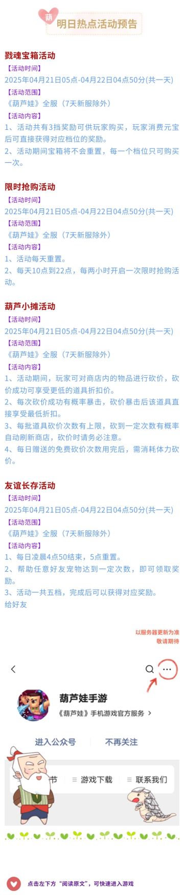 【葫芦娃】4月21日活动预告