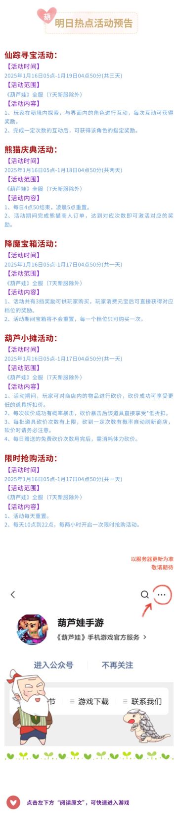 【葫芦娃】1月16日活动预告