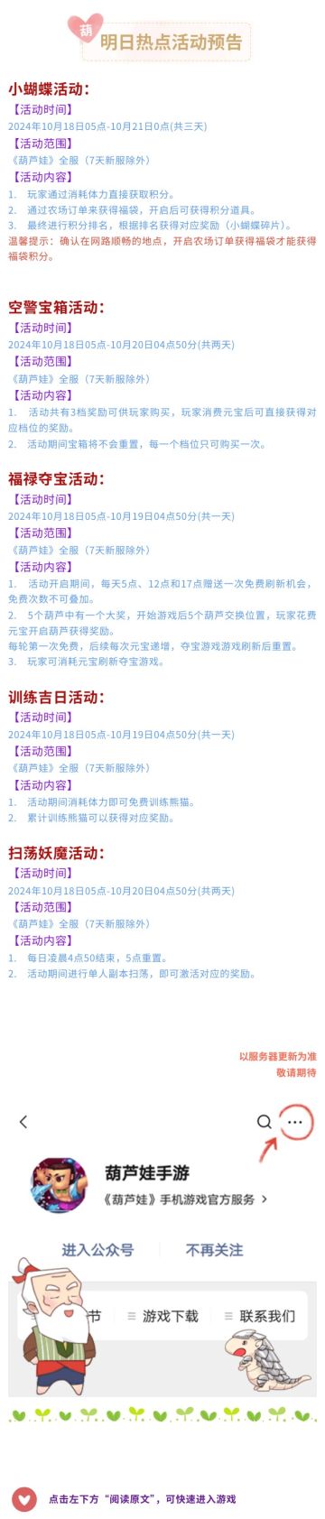 【葫芦娃】10月18日活动预告