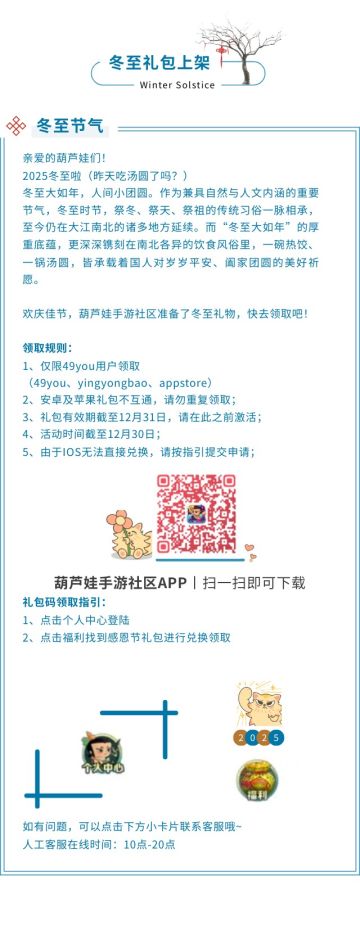 葫芦娃手游-社区福利冬至礼包上架