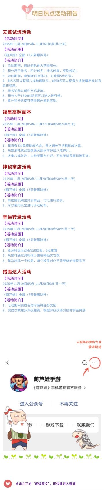 【葫芦娃】11月19日活动预告