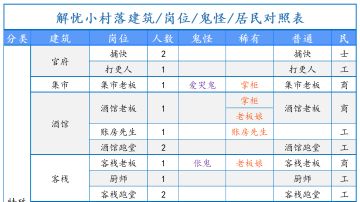 建筑/岗位/鬼怪/居民/对照表