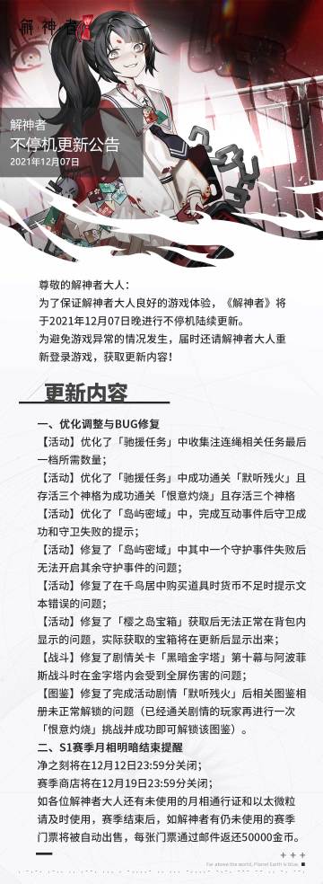 { "text": "#解神者#2021年12月7日不停机更新维护公告 (*╹▽╹*)", "raw_text": "" }