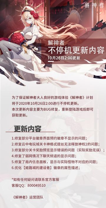 2020年10月26日不停机更新公告