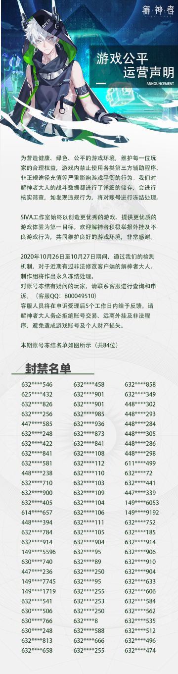 【解神者】10月27日封禁名单公示