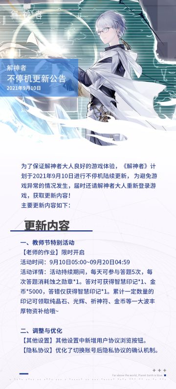 【解神者】2021年9月10日不停机更新公告