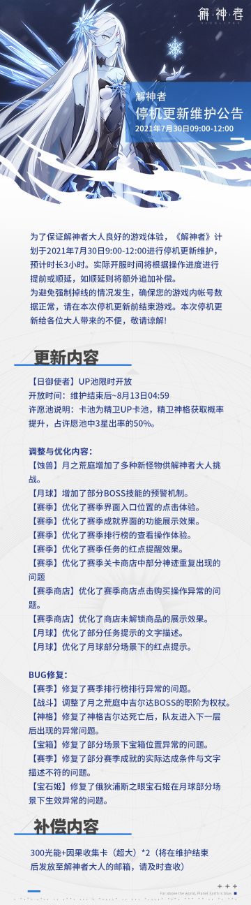 【解神者】2021年7月30日停机更新维护公告