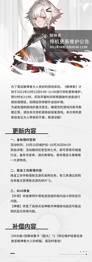 【解神者】2021年10月15日停机更新维护公告