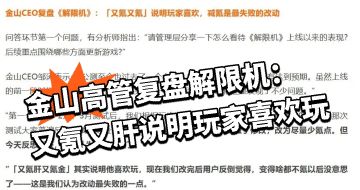 金山高管复盘解限机:又氪又肝说明玩家喜欢