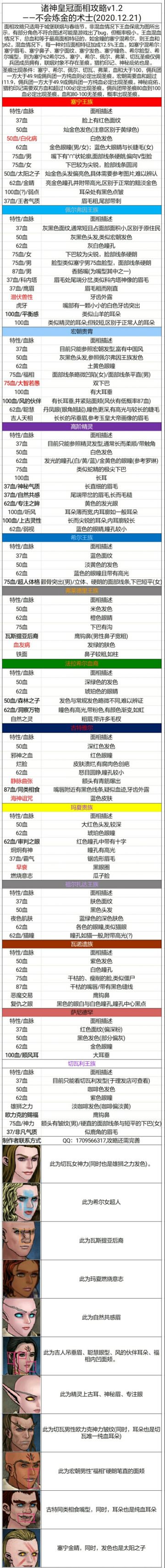诸神皇冠👑测试服新王族面相攻略及黑暗精灵面相攻略