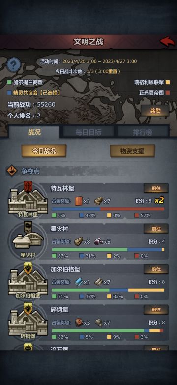 【文明抽奖】精灵阵营的同胞们!我们已经无路可退了!特瓦林一战是精灵最后的决战 精灵的大伙儿不要再继续把火力消耗在无意义的滨海了,让我们一起集中火力拿下特瓦林堡吧!我们需要集中我们的力量 在此危机时刻,精灵阵营开启了冲分随机抽奖活动,赞助者为E佬 规则如下 需要截图今日攻打特林伦堡的分数发在评论区,且本人为精灵阵营。 奖品为5份小月卡 中奖者随机抽取 开奖时间为明天12:00 希望精灵的大伙儿积极