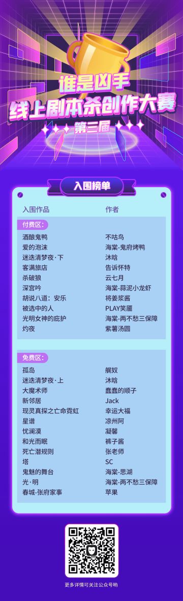 🎉剧本杀创作大赛入围名单来啦