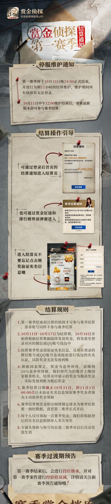 【重要通知】赏金侦探第一赛季即将收官!戳👈