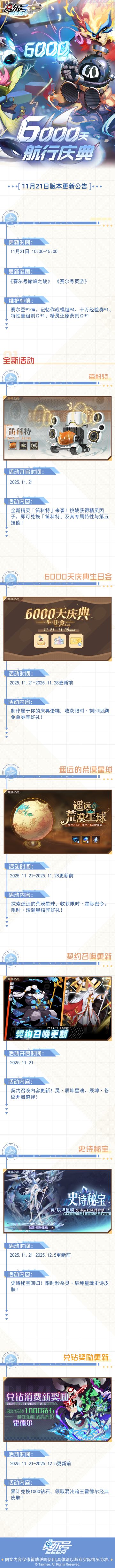 11月21日赛尔号新版本“6000天航行庆典”即将到来!