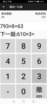 { "text": "速算练习攻略(个人见解,仅供参考):\n1.一口清建议练习顺序为2-5-3-4-6-7/8/9,觉得自己玩得比较熟练时,就可以尝试混合一口清。\n2.对于简单的项目,比如一位数加减、一位数乘除,可以手打着这道题的答案的同时,把下一道题的答案算出来。如果有实力,两位数加减,甚至三位数加减、2/5一口清也可以这样。\n3.玩好2位数及以上乘除,得先练好所有一口清。首先是一口清里面的两位数乘一位数,不熟悉的得多练练。可能熟练度相对比较差的是7/8/9一口清,比如78*7,如果还需要算,490+56=546,而不是直接看出来,就说明对这个算式不熟悉。\n4.可以先从比较简单的,也可以说是从数小一点的不熟的两位数乘一位数开始边练边记。(可以通过自定义模式练习两位数乘一位数)\n5.如果连续进位比较慢,应该多练高位数加减。\n6.多学一些真正的速算技巧(可以从网上查找)。比如十位数相同,个位数互补的两个数相乘,例如58*52,得数前两位为5*(5+1)=30,后两位为2*8=16,也就是说58*52=3016。\n7.初学者可能不能在倒计时模式下完成所有一口清,高位数加减和2位数及以上乘除。若不能完成可改为无倒计时模式。", "raw_text": "" }