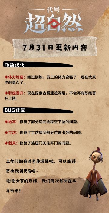 《代号:超自然》7月31日更新