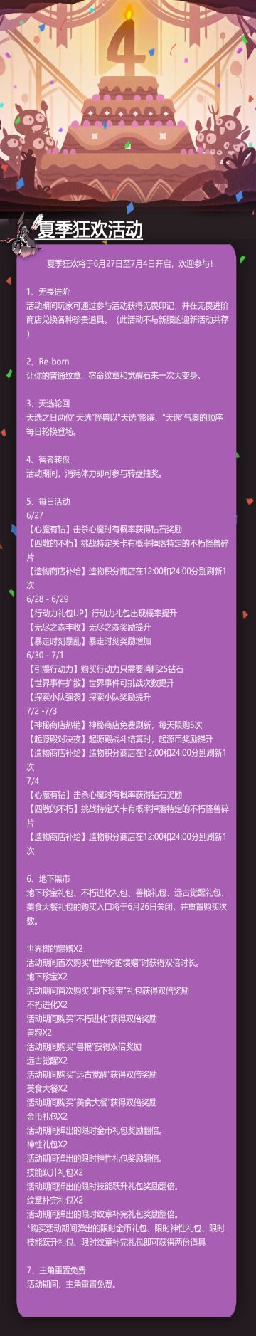 【活动预告】夏季狂欢活动来袭,主角重置免费来啦!
