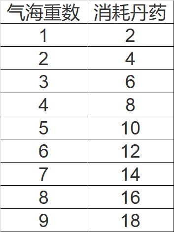 气海重数对应消耗的气海丹数量