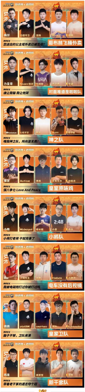 铁师傅老将杯八大战队集结完毕