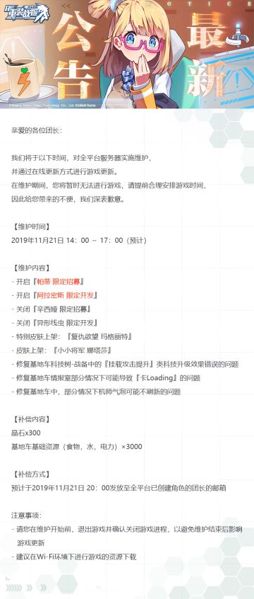 【重装战姬】更新维护公告(2019年11月21日)