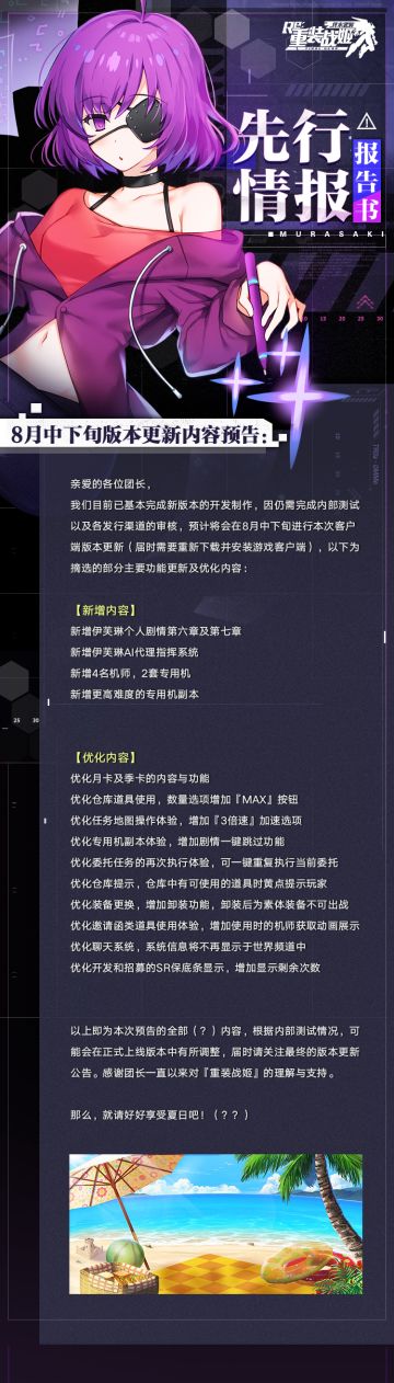 【重装战姬】关于8月中下旬游戏版本更新内容预告