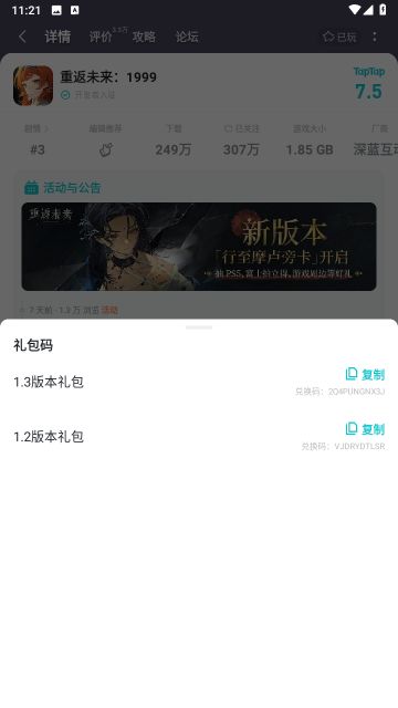重返未来:1999兑换码