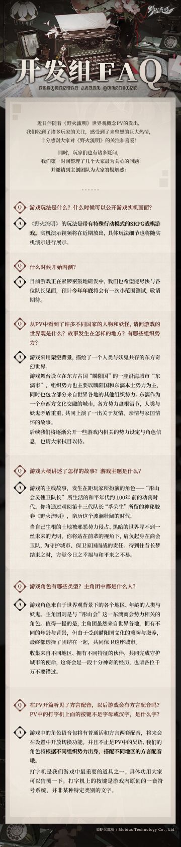 { "text": "各位队长亲启:\n感谢大家对《野火流明》的关注与喜爱!\n随着《野火流明》世界观概念PV的公开,我们第一时间整理了大家最为关心的几个问题,在此逐一解答,还请各位队长查阅。\n\n野火流明,静候与君相逢。", "raw_text": "" }