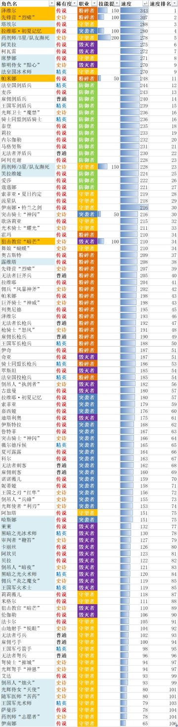 铃兰之剑速度表v1.33(至妮蒂娅)