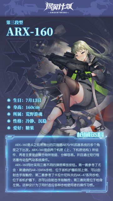 { "text": "【人事档案】\n“局长,在开始工作之前要来点糖果提起精神吗?”——ARX-160", "raw_text": "" }