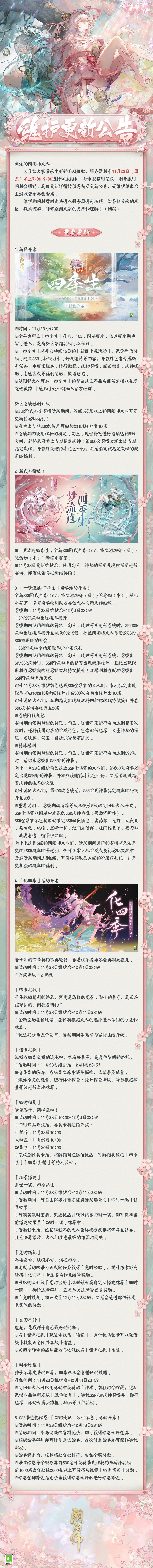☆11月23日维护更新公告☆