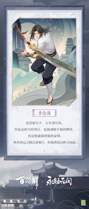 { "text": "生于江湖,兼具火德之身,独行长路,亦有刀剑相伴。熊熊烈火映耀阔刀,遇强则强的不羁烈豪,清扫劲敌之势亦如业火般迅猛。\n武艺天赋极高的季沧海,在牌局之上也有着极强的进攻性与压制力。季沧海是一位具备「蓄力」能力的角色,当季沧海处于「蓄力」状态时,将获得额外的力量值加成。季沧海的基础能力,配合其自身卡牌的「蓄力」效果,能够向对手发动如燎原劲火般的攻势。\n更多角色与卡牌情报奉上!\n(游戏内容以正式服版本为准)", "raw_text": "" }