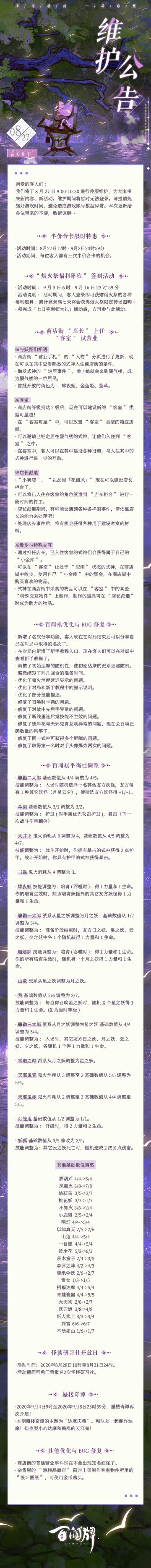 【阴阳师:百闻牌】8月27日更新维护公告