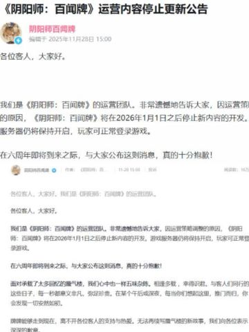 《阴阳师:百闻牌》六周年官宣:停更不停运