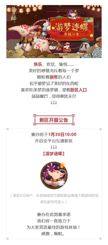 开服公告 酣然入睡,迷游蝶梦