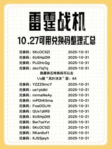 雷霆战机 10月兑换码,不可重复使用