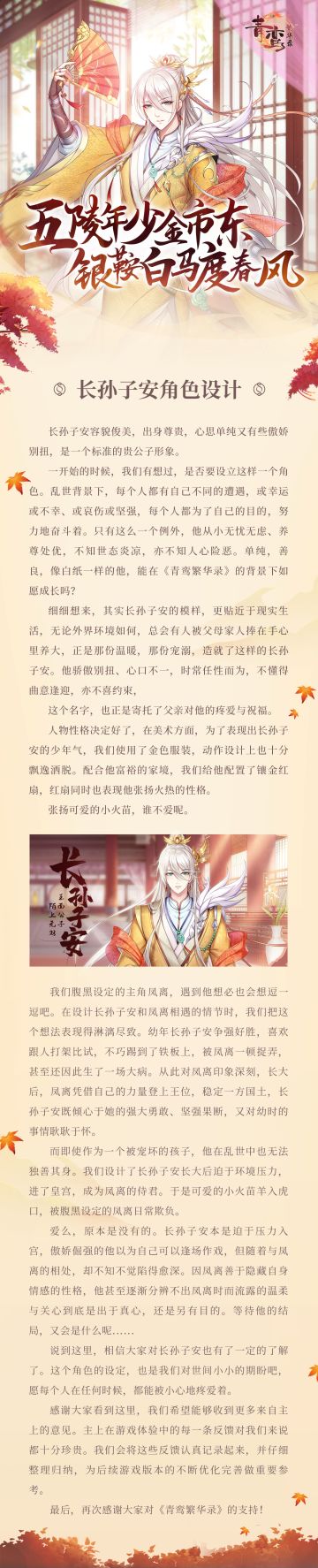 【青鸾角色录】长孙子安——五陵年少金市东,银鞍白马度春风。