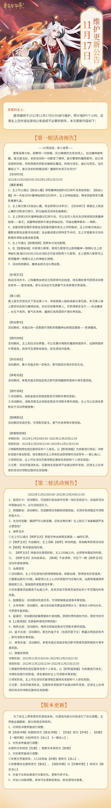 11.17更新公告来啦~主上请注意查收