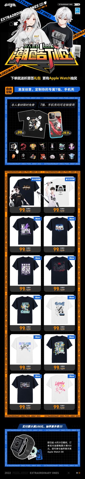 "text": "#非人学园#\n非人夏日look系列潮酷T恤全新款式上架啦,简约百搭,潮流有型!\n潮T、手机壳均可自由DIY非人素材图案,快来发挥你的脑洞!\n更有申姜组合同款等你来!定制T恤99元就可获得,定制手机壳低至19.9元,钜惠惊喜不断!\n\n下单即可获得祈愿签礼包,还有机会获得苹果手表Apple Watch!\n福利多多,抓紧时间行动起来吧!\n点击非人学园游戏内活动图直接跳转至详情页或在小程序——【失控像素】内查找即可购买!\n—————— ฅ՞••՞ฅ———————\n哟呼!非人学园官方QQ群现已建立!\n想找好伙伴一起开黑吗?\n马上加入QQ群,同学们一呼百应~\n官方群:1063879524\n快快下载《非人学园》一起游戏吧(╭ ̄3 ̄)╭\n下载地址:http://qwq.163.com/fab/",