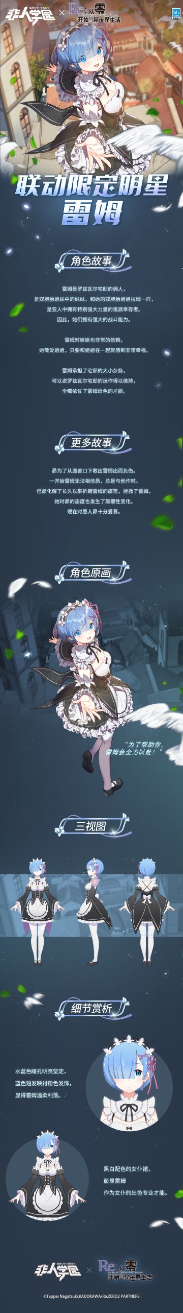 { "text": "#非人学园×Re:从零开始的异世界生活# #非人学园# #Re:从零开始的异世界生活#\n“只要雷姆能做到的,请尽管吩咐。”\n\n雷姆承担了罗兹瓦尔的宅邸的大小杂务,\n可以说罗兹瓦尔宅邸的运作得以维持,\n多亏了雷姆出色的才能。\n\n雷姆对日常的家务工作乐在其中。为了姐姐和昂的幸福而努力!\n\n全新【体术】联动明星——雷姆将正式加入学园竞技场!\n雷雷带来了她更多的个人故事,同学们一起看看吧↓↓\n\n▷活动时间\n2023年1月4日更新后-1月24日,\n联动明星【雷姆】限时上架商城,售价688五色石!\n联动异次元碎片礼包限时上架,在售期间可享7折优惠~\n同学们不要错过呀!\n—————— ฅ՞••՞ฅ———————\n联动QQ群现已建立,找到伙伴一起开黑!\n马上加入QQ群,同学们一呼百应~\n联动群:535793829\n快快下载《非人学园》一起游戏吧(╭ ̄3 ̄)╭", "raw_text": "" }