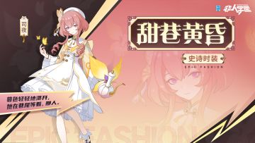 #非人学园##S21:夏日如歌# 雷雷给大家带来了好价新时装情报: 司夜史诗级时装【甜巷黄昏】即将上新! 暮色倾泻在街角巷尾, 落日钟声宣告着假日的完结。 少女换上一身黄白色的学院衣裙, 时间仿佛回到了与那人在校园里的青涩初见…… 夜幕降临,谁人在静静等候着一场重逢? 8月23日更新后,司夜史诗级时装【甜巷黄昏】全新上线! 九块九!九块九(。・`ω´・)!!仅需99五色石即可拿下时装+染色全套! 吾