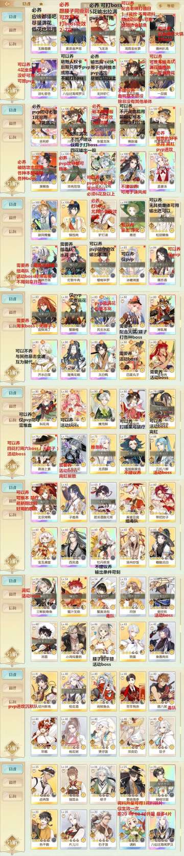养成方面先看下面这张图