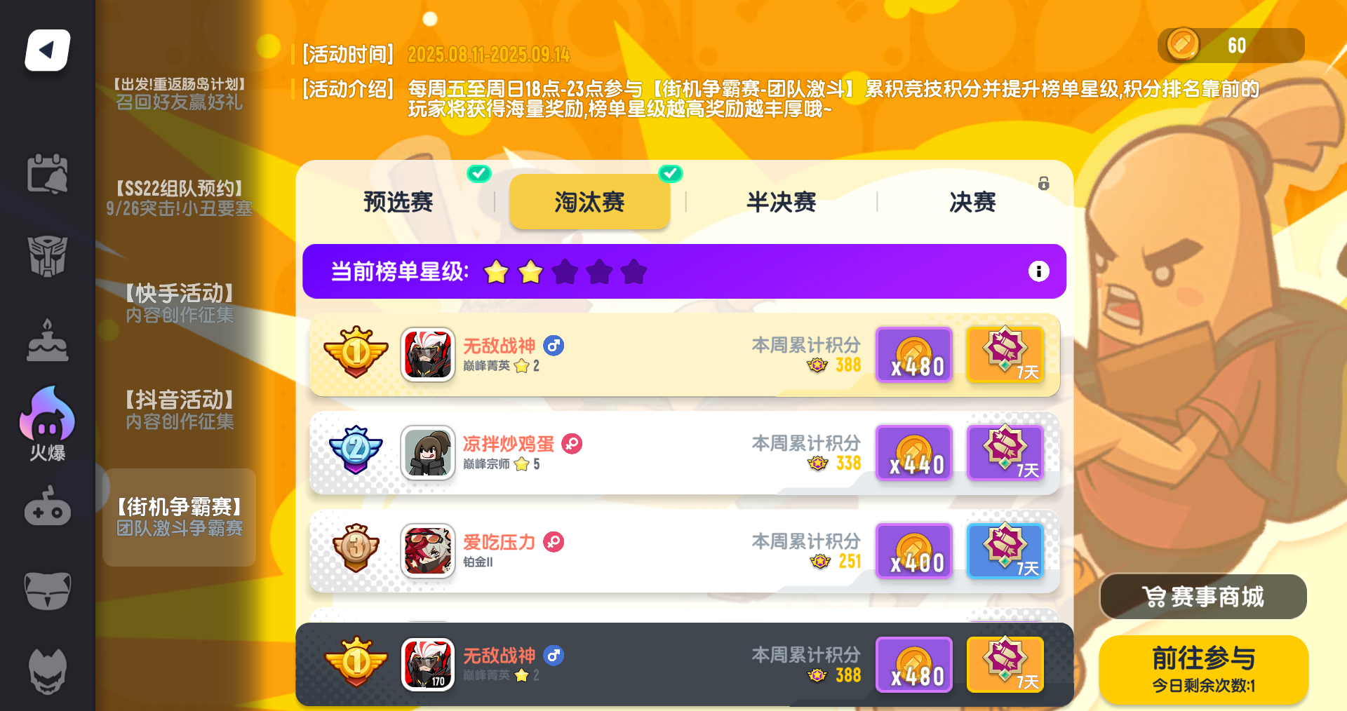 发现比较轻松打街机争霸的办法(淘汰赛别发力,拿两三星)。