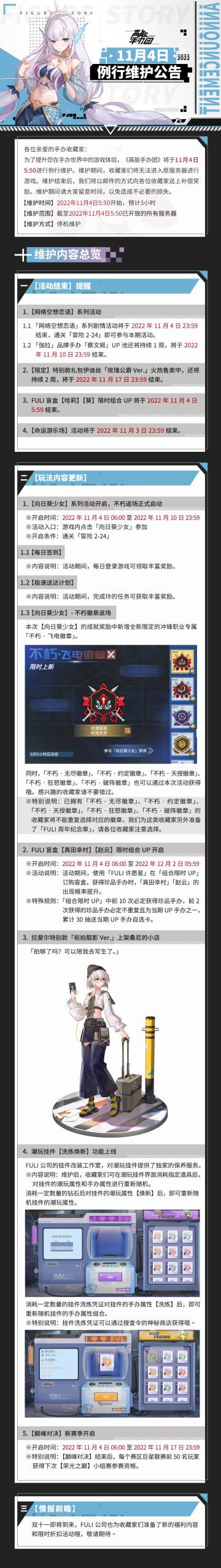 《高能手办团》2022年11月4日例行维护公告
