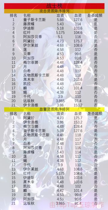 魂器学院全角色攻血资质排行(2023.04.20)